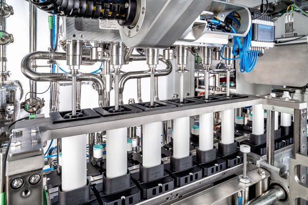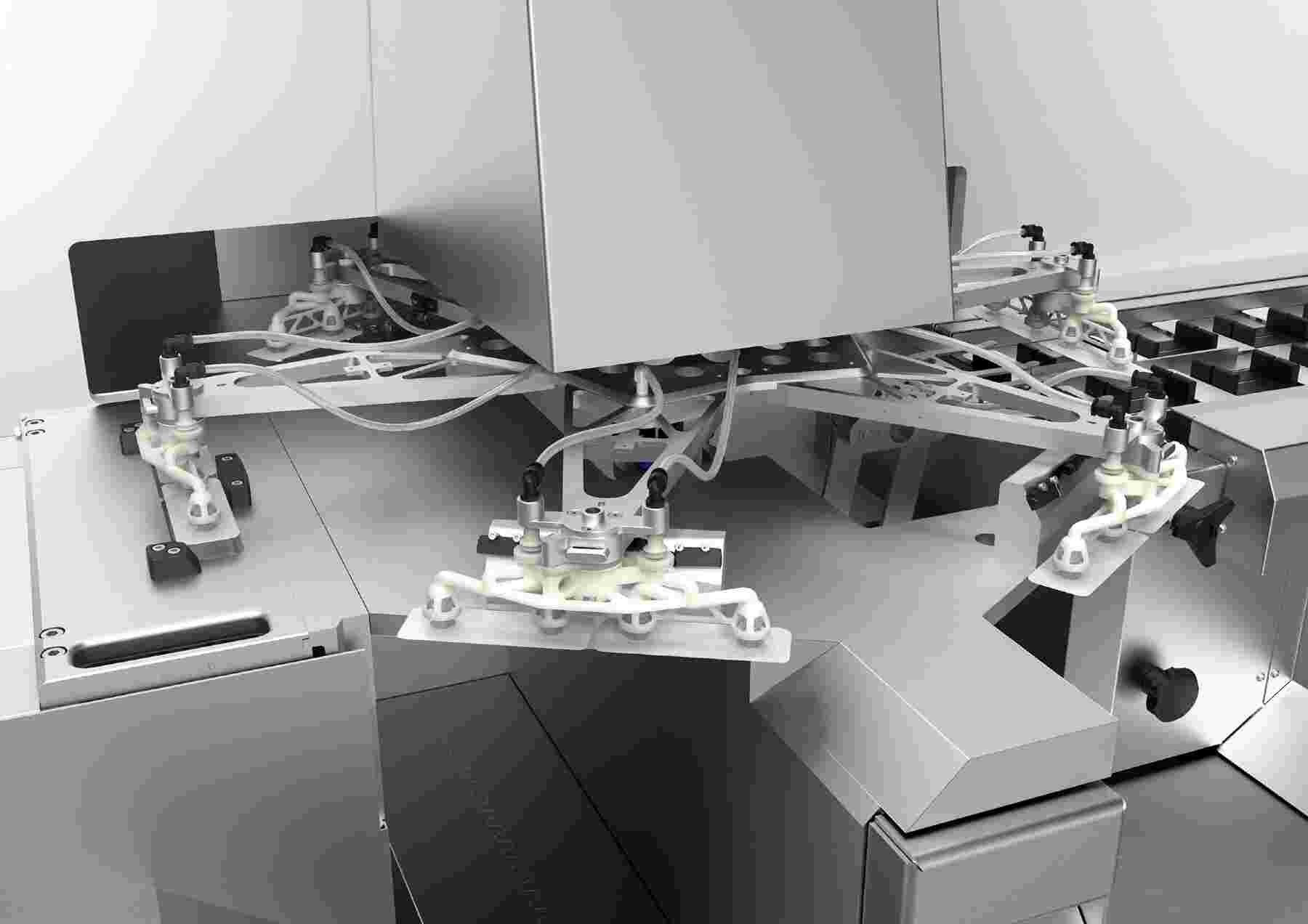 Bei der Unity 600 erfolgt der Direkttransfer der Blister zum Kartonierer über ein Taktrad mit angeschlossener Stapelübergabeeinheit. Zunächst werden die ausgestanzten Blister mit Vakuum von der Stanze abgenommen und von einem karussellförmigen Shuttle auf das Transferband zum Kartonierer übersetzt. Das Vakuum wird dabei mit dem Venturi-Verfahren erzeugt, wodurch auf eine konventionelle Vakuumpumpe verzichtet werden kann. Neben der Senkung der Lärmbelastung hat dies den Vorteil, dass im Reinraum signifikant weniger Wärmestrahlung emittiert wird, die energieintensiv heruntergekühlt werden muss. Außerdem werden die Vakuumsauger des Taktrads ausschließlich dann aktiviert, wenn sie einen Blister transportieren. Auf diese Weise wird keine Fehlluft gezogen und die Leistungsaufnahme erheblich reduziert.